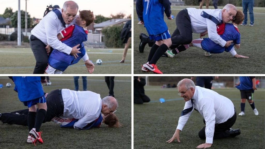 এবার খুদে ফুটবলারদের কাছে ধরাশয়ী হয়েছেন অস্ট্রেলিয়ার প্রধানমন্ত্রী স্কট মরিসন। ধাক্কা খেয়ে কুপোকাত হয়ে পড়লেন মাটিতে। আসন্ন নির্বাচনের প্রচারণা উপলক্ষে এক প্রীতি ফুটবল ম্যাচে অংশ নিয়ে এ কাণ্ড ঘটান স্কট মরিসন।