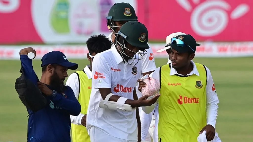 ১ম ইনিংসে ব্যাটিং করার সময় হাতে আঘাতপ্রাপ্ত হন শরিফুল ইসলাম।