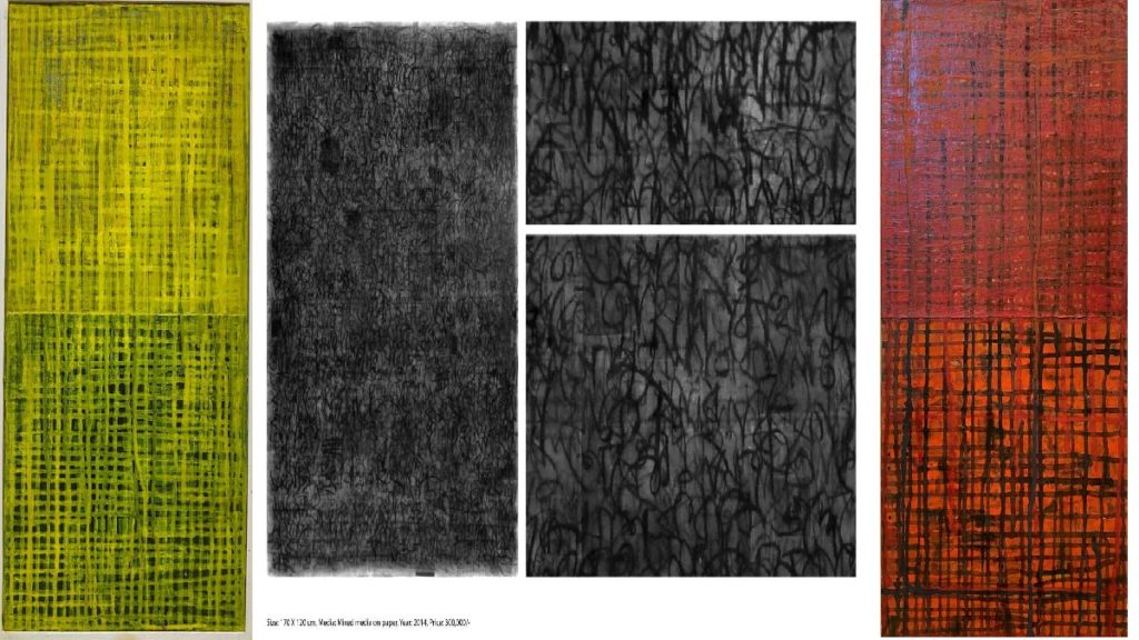 শিল্পী গেরুয়া কোনো পোশাক বা সুফিদের মতন সাদা কাপড়ে নিজেকে আবৃত করেন নাই, তিনি সংযমে লিপ্ত, ক্যানভাসে-রেখায়-বর্ণে-কাগজে শিল্পের ভাষাকে নিয়মনে ব্যক্ত করতে। কয়েক দশকের শিল্প চর্চায় তিনি উপস্থিত হয়েছেন নানাভাবে।
