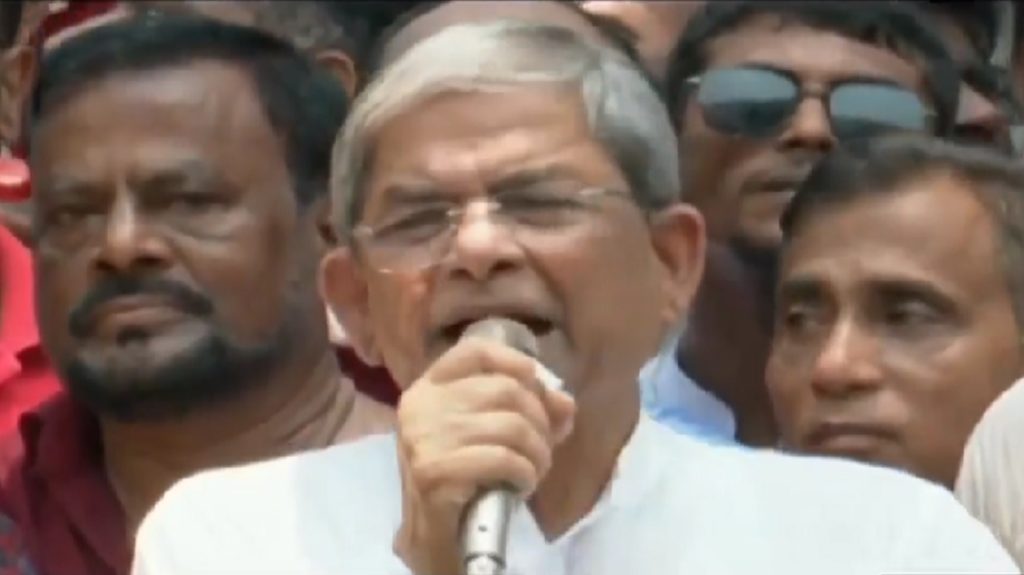 খালেদা জিয়াকে হত্যার হুমকি দেয়ার প্রতিবাদে সোমবার (২৩ মে) সকালে জাতীয় প্রেসক্লাবে ঢাকা উত্তর ও দক্ষিণ বিএনপির প্রতিবাদ ও বিক্ষোভ সমাবেশে এ হুঁশিয়ারি দেন তিনি। মির্জা ফখরুল বলেন, প্রধানমন্ত্রীর মুখ থেকে এমন কথা আসতে পারে যা কল্পনাও করা যায় না। কোনো সভ্য দেশের মানুষ এটা মানবে না বলেও মন্তব্য করে বিএনপি মহাসচিব বলেন, প্রধানমন্ত্রীর বক্তব্য শুনে সারা দেশের মানুষ ধিক্কার জানাচ্ছে। প্রধানমন্ত্রী জেনে গেছেন আর ক্ষমতায় আসতে পারবেন না। তাই এমন অসংলগ্ন কথা বলছেন বলে দাবি করেন ফখরুল। পদ্মা সেতু জনগণের টাকায় হয়েছে জানিয়ে ফখরুল বলেন, এটি কারও একক সম্পত্তি নয়। উন্নয়নের নামে সরকার মিথ্যা তথ্য দিচ্ছে বলেও জানান তিনি।