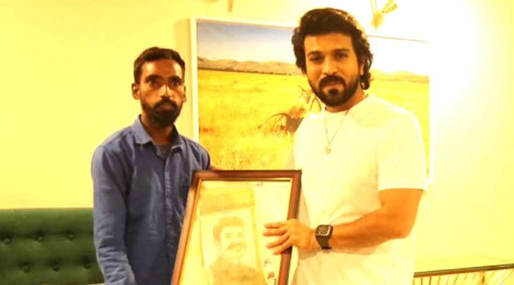 জয়রাজের সঙ্গে রামচরণের ছবি টুইটারে শেয়ার করে বিষয়টি জানান দক্ষিণী প্রযোজক শিবা চেরি। তিনি জানান, গাড়ওয়াল এলাকায় ধানের খেত রয়েছে ওই ব্যক্তির। সেই জমিতে উৎপন্ন ধান দিয়ে তিনি রামচরণের প্রতিকৃতি তৈরি করেছেন। নিজের শিল্পকর্ম প্রিয় তারকার হাতে তুলে দিতে ২৬৪ কিলোমিটার পথ পায়ে হেঁটে এসেছেন তিনি।
