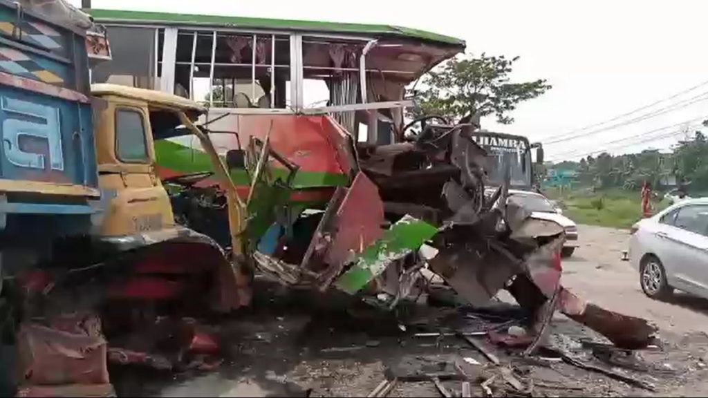 রোববার (৫ জুন) সকাল ৯টার দিকে ঢাকা-আরিচা মহাসড়কের সাভারের বলিয়াপুর এলাকার ইউটার্ণে এ ঘটনা ঘটে। নিহতরা হলেন পূজা সরকার, আরিফুর রহমান ও কায়সার আহমেদ। তবে তাদের বিস্তারিত পরিচয় তাৎক্ষনিকভাবে জানা যায়নি।