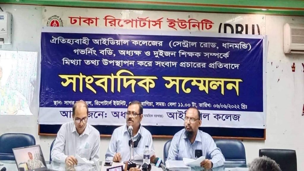 সোমবার (৬ জুন) রাজধানীতে এক সংবাদ সম্মেলনে তিনি এ দাবি করেন। সংবাদ সম্মেলনে ধানমন্ডি আইডিয়াল কলেজের বহিষ্কার হওয়া শিক্ষক তরুণ কুমার গাঙ্গুলী, তৌফিক আজিজ চৌধুরীসহ সাবেক শিক্ষার্থীরা উপস্থিত ছিলেন।