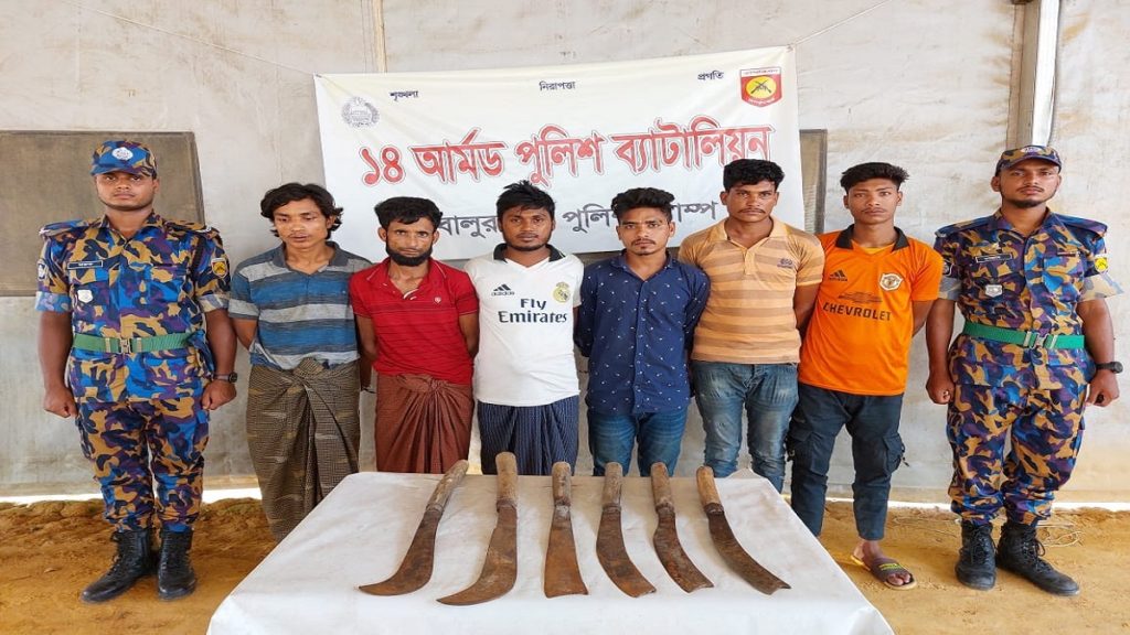 কক্সবাজারের উখিয়া রোহিঙ্গা ক্যাম্পে ডাকাতির প্রস্তুতিকালে দেশীয় অস্ত্রসহ ছয় রোহিঙ্গাকে আটক করেছে আর্মড পুলিশ ব্যাটালিয়ন (এপিবিএন)।