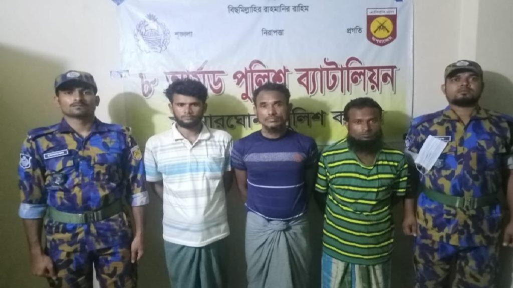 গ্রেফতারকৃতরা হলো, ক্যাম্প১৯, ব্লক এ/৮ এর বাসিন্দা মৃত মো. সেলিমের ছেলে মো. হাসিম (৪০)। ক্যাম্প ১৬, ব্লক সি/৬ এর আব্দুল হাকিমের ছেলে মো. জাবের (৩২)। ক্যাম্প ১৬, ব্লক সি/৬ এর মৃত আবুল কাছিমের ছেলে মৃত ইলিয়াছ (৪০)। এরা যথাক্রমে মামলার ৩-৫ নং আসামি।