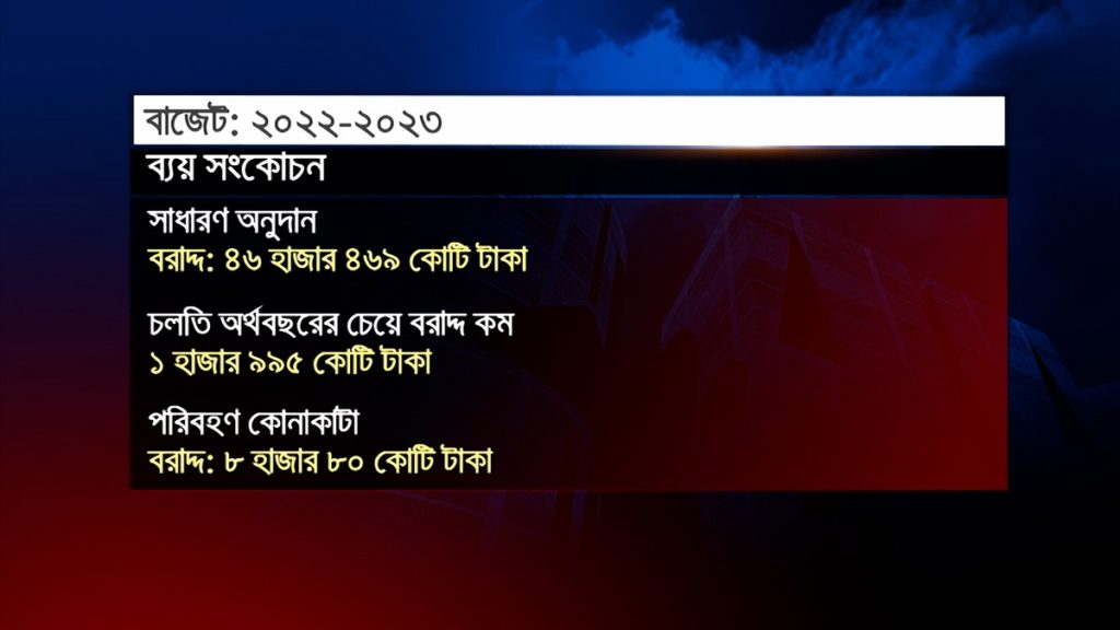 চলতি অর্থবছরের চেয়ে তেল, বিদ্যুৎ, গ্যাস ও সারে ভর্তুকি বাড়ছে প্রায় ১৫ হাজার কোটি টাকা। ভর্তুকির চাপ সামাল দিতে নানাক্ষেত্রে ব্যয় সংকোচনের উদ্যোগ নেয়া হয়েছে। প্রস্তাবিত বাজেটেও সরকারি ব্যয় কমিয়ে আনার পদক্ষেপ আছে। অনুদান, বিভিন্ন মন্ত্রণালয়ের পরিবহন এবং পরিবহন যন্ত্রাংশ কেনাকাটায় কমেছে বরাদ্দ। এছাড়া প্রশিক্ষণ, সেমিনারে সম্মানী ভাতাও করা হয়েছে কাটছাঁট।