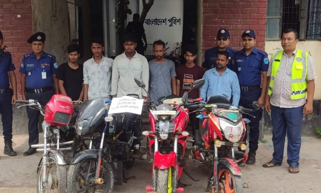 রাজবাড়ীতে ৪টি চোরাই মোটরসাইকেল উদ্ধারসহ চোর চক্রের ৬ সদস্যকে গ্রেফতার করেছে পুলিশ। বুধবার (১৫ জুন) বিকালে যথাযথ আইনি প্রক্রিয়া শেষে গ্রেফতারকৃতদের আদালতে পাঠানো হয়েছে।
