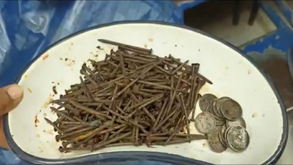 একে একে খেয়েছেন ২৫০টি পেরেক। খাবার তালিকায় ছিল কয়েন আর পাথরও। অবিশ্বাস্য এ ঘটনা ঘটেছে ভারতের পশ্চিমবঙ্গে। পূর্ববর্ধমানের এক যুবকের পেট থেকে অস্ত্রোপচারের পর এসবই পেয়েছেন ডাক্তাররা। পরিবারের দাবি, দীর্ঘদিন ধরে মানসিক সমস্যায় ভুগছেন তিনি। কয়েকদিন ধরে বন্ধ করে দিয়েছিলেন খাওয়া-দাওয়া।