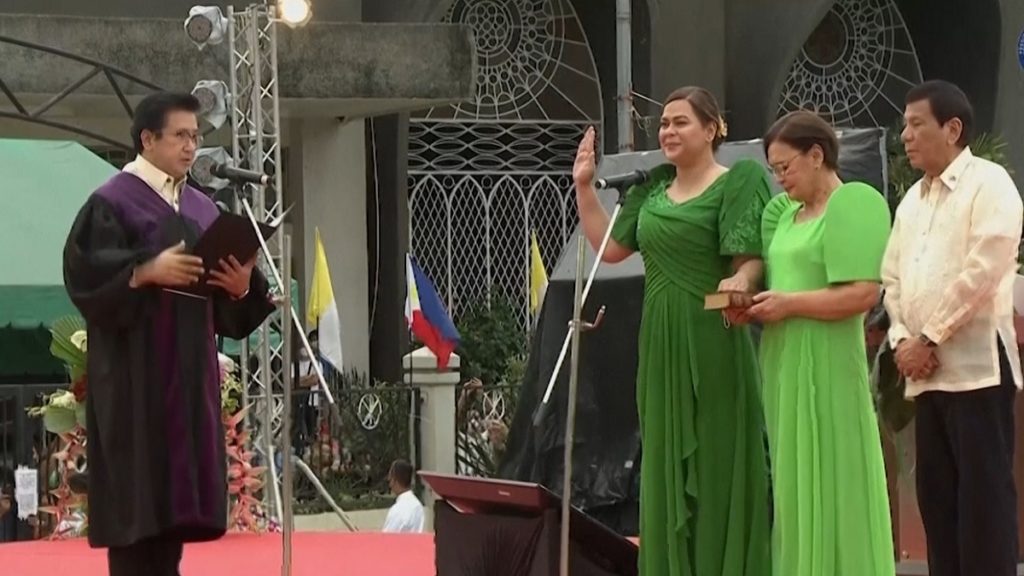 ফিলিপাইনের ভাইস প্রেসিডেন্ট পদে শপথ নিলেন দুতের্তের কন্যা সারা। রোববার (১৯ জুন) নিজ শহর দাভাওতে আয়োজিত এক অনুষ্ঠানে শপথবাক্য পাঠ করেন তিনি। খবর বার্তা সংস্থা এপির।