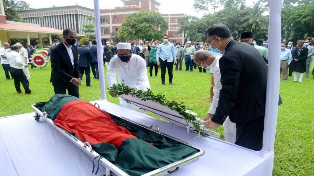 জানাজার পর মরহুমের মরদেহে পুষ্পস্তবক অর্পণ করেন প্রধানমন্ত্রীর বিদ্যুৎ, জ্বালানি ও খনিজ সম্পদ বিষয়ক উপদেষ্টা ড. তৌফিক-ই-ইলাহী চৌধুরী, বীরবিক্রম। পররাষ্ট্র মন্ত্রণালয়ের পক্ষ হতে ফুল দিয়ে শ্রদ্ধা জানান পররাষ্ট্র প্রতিমন্ত্রী মো. শাহরিয়ার আলম, এমপি এবং পররাষ্ট্র সচিব (সিনিয়র সচিব) মাসুদ বিন মোমেন।