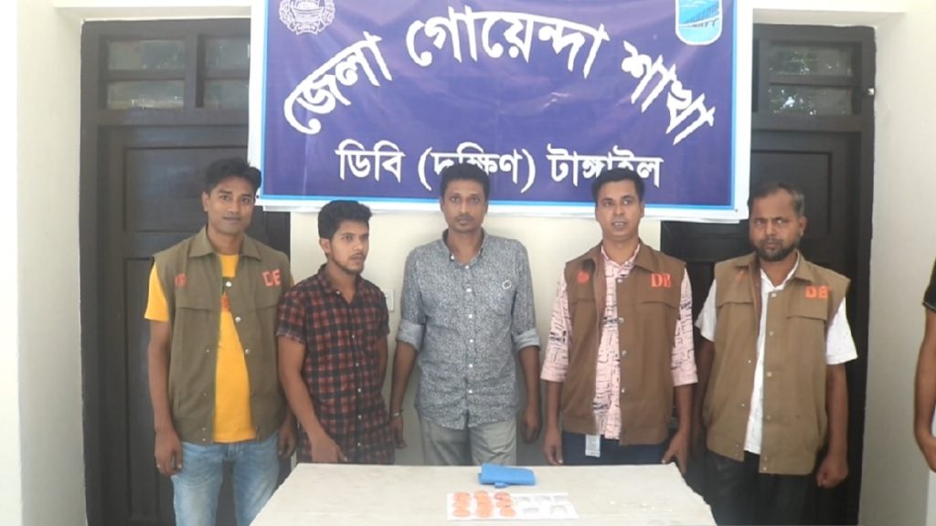 জেলা গোয়েন্দা শাখা (দক্ষিণ) ডিবি পুলিশের অফিসার ইনচার্জ দেলওয়ার হোসেন প্রেস বিজ্ঞপ্তির মাধ্যমে জানান, গোপন সংবাদের ভিত্তিতে জেলার মির্জাপুর উপজেলার মির্জাপুর ক্যাডেট কলেজ সংলগ্ন হলিদ্রাচালা এলাকায় অভিযান চালায় ডিবি পুলিশের একটি দল। এসময় ২৮ লাখ টাকা মূল্যের ৫০ গ্রাম ক্রিস্টাল মেথ আইস ও ১ হাজার পিস ইয়াবাসহ তাদের হাতেনাতে আটক করা হয়। তাদের বিরুদ্ধে মির্জাপুর থানায় মাদক মামলা দায়ের করা হয়েছে বলেও জানানো হয় বিজ্ঞপ্তিতে।