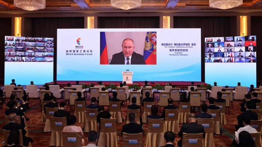 বৃহস্পতিবার (২৩ জুন) ভার্চ্যুয়ালি আয়োজিত চলমান ব্রিকস শীর্ষ সম্মেলনে যোগ দেন রুশ প্রেসিডেন্ট ভ্লাদিমির পুতিন। এ সম্মেলনে যোগ দেয়ার মাধ্যমে কার্যত বিশ্বমঞ্চে আবারও ফিরে এলেন পুতিন। ইউক্রেনে রুশ হামলা শুরুর পর এই প্রথম কোনো বৈশ্বিক জোটের শীর্ষ নেতাদের সম্মেলনে যোগ দিলেন পুতিন। খবর সিএনএনের।