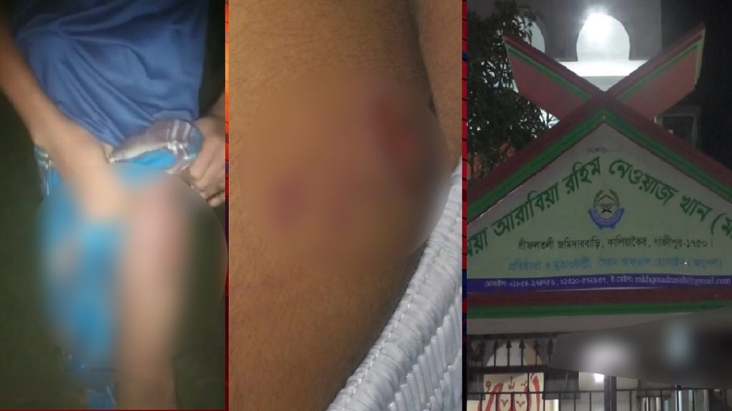 মাদরাসাছাত্রদের গোপনাঙ্গে গরম পানি ঢেলে নির্যাতনের অভিযোগ পাওয়া গেছে গাজীপুরের একটি মাদরাসার শিক্ষকের বিরুদ্ধে। এ ঘটনায় বৃহস্পতিবার (২৩ জুন) রাতে শ্রীফলতলী জামিয়া আরাবিয়া রহিম নেওয়াজ খাঁন মাদ্রাসা ঘেরাও করেন অভিভাবকরা। অভিযোগ দিলে আইনগত ব্যবস্থার নেয়ার কথা জানায় পুলিশ।