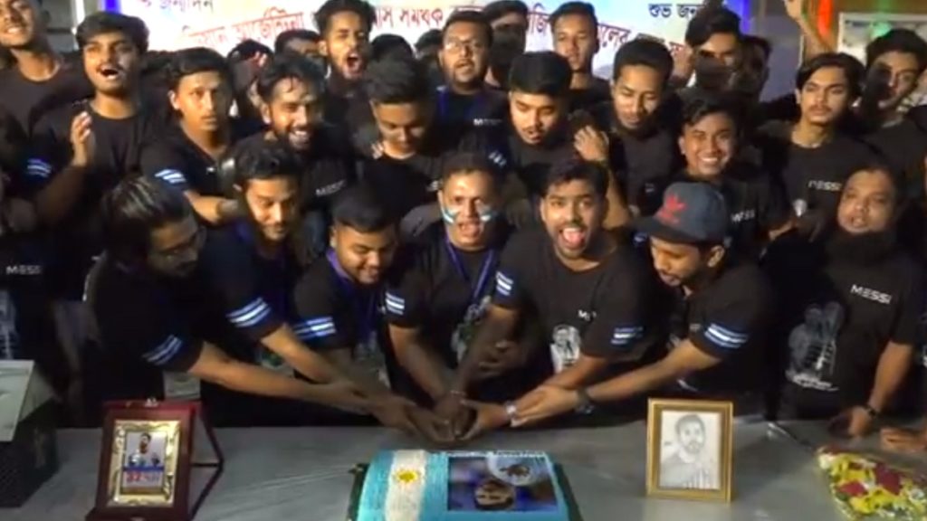 ব্রাহ্মণবাড়িয়ায় কেক কেটে আর্জেন্টাইন ফুটবল তারকা লিওনেল মেসির ৩৫তম জন্মদিন উদযাপন করা হয়েছে।