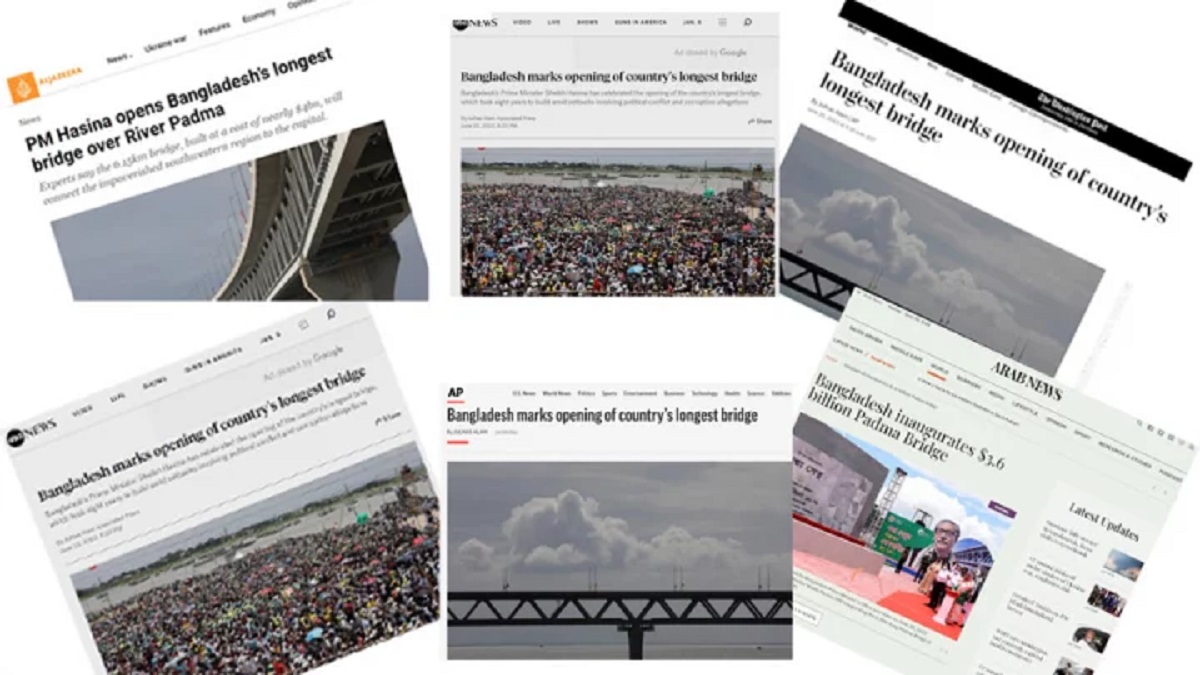 এছাড়া ব্রিটিশ গণমাধ্যম ডেইলি মেইল, চীনের সংবাদ সংস্থা সিনহুয়া, পাকিস্তানের ডেইলি টাইমসসহ বিশ্বের বিভিন্ন গণমাধ্যমে স্থান পেয়েছে পদ্মা সেতুর খবর।