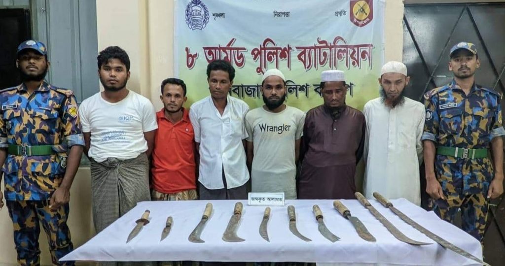 কামরান হোসেন জানান, ক্যাম্প-৯ এর ব্লক সি/১১ এর মক্তবের সামনে ২০ জনের একটি রোহিঙ্গা দল ডাকাতির প্রস্তুতি নিচ্ছে এমন গোপন সংবাদের ভিত্তিতে ধাওয়া করে ছয়জন রোহিঙ্গা দুষ্কৃতকারীকে গ্রেফতার করা হয়। এ সময় ঘটনাস্থল থেকে অন্তত ১০টি বিভিন্ন প্রকার দা, ছুরি ও কিরিচ উদ্ধার করা হয়। আইনী প্রক্রিয়া শেষে জব্দকৃত অস্ত্রসহ ধৃতদের উখিয়া থানায় হস্তান্তর করা হয়েছে।