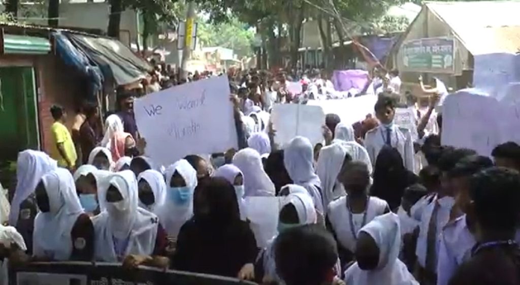 প্রিয় শিক্ষকের হত্যা বিচারের দাবিতে দফায় দফায় বিক্ষোভ মিছিল আর প্রতিবাদ সভা অনুষ্ঠিত হচ্ছে শিক্ষাপ্রতিষ্ঠানটিতে। বিক্ষুব্ধ শিক্ষার্থীদের অভিযোগ, দুইদিন পার হলেও পুলিশ এখনও গ্রেফতার করতে পারেনি বখাটে ছাত্র জিতুকে। ৪৮ ঘণ্টার মধ্যে তাকে গ্রেফতারসহ ৬ দফা দাবি জানিয়েছে শিক্ষাথীরা।