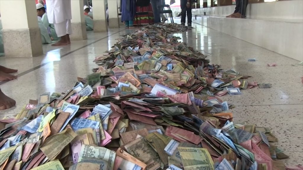 কিশোরগঞ্জের ঐতিহাসিক পাগলা মসজিদের দানবাক্স খুলে এবারও সবার চক্ষু চড়কগাছ! মিললো সর্বাধিক সাড়ে ১৬ বস্তা দেশি-বিদেশি মুদ্রা। টাকার পরিমাণে যা ৩ কোটি ৬০ লাখ ২৭ হাজার ৪১৫। পাওয়া গেছে বিপুল পরিমাণ স্বর্ণ ও রৌপ্যালঙ্কার। একই সঙ্গে মিলেছে মনস্কামনা পূরণের নিয়তে মানতের অসংখ্য চিঠি।