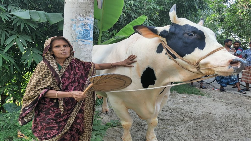 ময়নদ্দিনের স্ত্রী আনজিরা খাতুন জানান, তিনি একবছর ধরে এই গরুটা লালন পালন করছেন। তার গায়ে কখনো ময়লা হতে দেয়নি। দিনে তিন বার গোসল করানো হতো। তাকে শুধু মাঠের কাঁচা ঘাস, বাড়িতে উৎপাদিত গম, ছোলা ও ধান খাওয়ানো হতো। গরিব হওয়ায় ভালো কোনো খাদ্য খাবার খাওয়াতে পারেনি। এখন এই গরুটি বিক্রি করে নিজেদের সংসারের খরচ এবং আরও দুইটা গরু কেনার আশা তার। তাকে বিদায় দিতেও অনেক কষ্ট হচ্ছে। তারপরও তাকে বিক্রি করতে হবে।