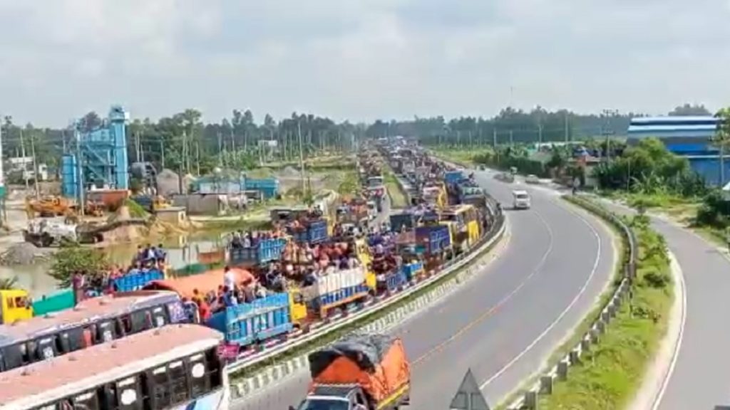 ঢাকা-টাঙ্গাইল-বঙ্গবন্ধু সেতু মহাসড়কে শুক্রবার থেকে ব্যাপক যানজটের সৃষ্টি হয়েছে। শনিবার (৯ জুলাই) সকাল পর্যন্ত সেতুর পূর্বপ্রান্ত থেকে টাঙ্গাইল সদর উপজেলার করটিয়া পর্যন্ত প্রায় ৩০ কিলোমিটার এলাকায় যানজটের সৃষ্টি হয়েছে।