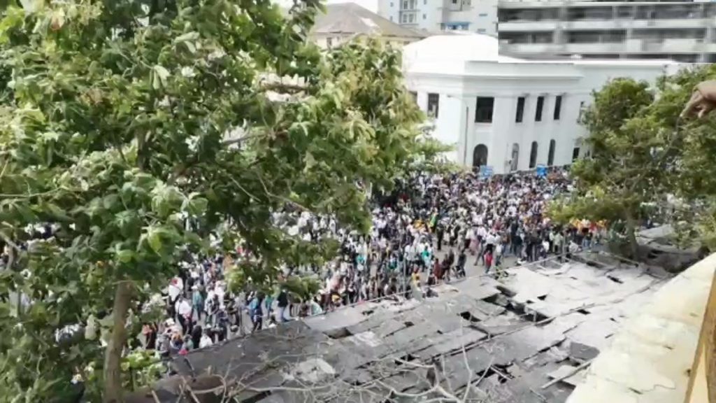 শ্রীলঙ্কার স্থানীয় গণমাধ্যমগুলো বলছে, প্রেসিডেন্টের নিরাপত্তার জন্য তাকে অন্যত্র সরিয়ে নেয়া হয়েছে। বিক্ষোভকারীরা সেনা প্রহরা ও ব্যারিকেড ভেঙে বাসভনের ভেতরে ঢুকে পড়ে। তাদের নিরস্ত করতে সৈন্যরা ফাঁকা গুলি ছুড়লেও সেনা সদস্যরা সুবিধা করতে পারেননি।