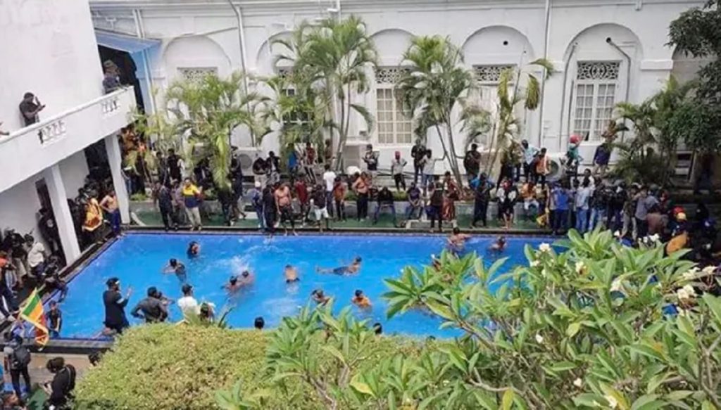চরম অর্থনৈতিক সঙ্কট পার করছে দ্বীপদেশ শ্রীলঙ্কা। এরইমধ্যে আন্দোলনের মুখে নিজের বাড়ি ছেড়ে পালিয়েছেন প্রেসিডেন্ট গোতাবায়া রাজাপাকসে। পরে রাষ্ট্রপতির বাসভবনে ঢুকে পুলে সাতার কেটেছে বিক্ষোভকারীরা। শনিবার (৯ জুলাই) এমন প্রতিবেদন প্রকাশ করে ভারতীয় সংবাদমাধ্যম এনডিটিভি।