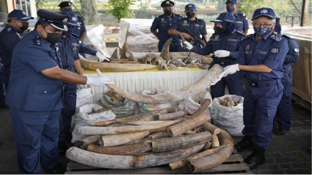 সোমবার (১৮ জুলাই) প্রায় ৬ হাজার কেজি হাতির দাঁত ধরা পড়েছে মালয়েশিয়ার কাস্টমস বিভাগের অভিযানে। শুধু কি হাতির দাঁত? মিলেছে গণ্ডারের শিং, বাঘের দাঁত, প্যাঙ্গোলিনের আঁশ, আরও কিছু বন্য প্রাণীর হাড়, শিং ও মাথার খুলি, যেগুলোর ওজন ৩০০ কেজি।