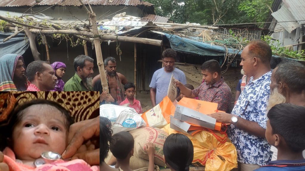 মঙ্গলবার (১৯ জুলাই) দুপুরে ত্রিশালের রায়মণি এলাকার বাড়িতে ওই শিশুটির পরিবারের সবার জন্য খাদ্য সামগ্রী, পোশাক এবং শিশুর চিকিৎসার জন্য নগদ ১০ হাজার টাকা পাঠান ত্রিশালের বিশিষ্ট সেই ব্যবসায়ী। নবজাতকের দাদা-দাদি ও ভাই-বোন এসব সামগ্রী গ্রহণ করেন।