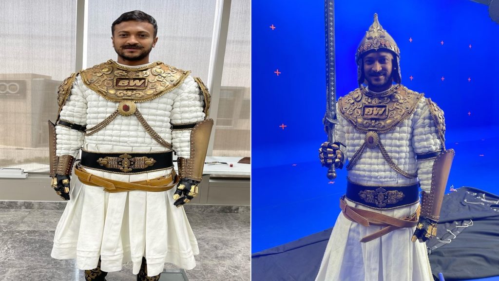 মঙ্গলবার (১৯ জুলাই) রাতে নিজের সোশ্যাল মিডিয়াতে দুইটি ছবি পোস্ট করেছেন সাকিব। ছবি দুটিতে সাকিব হাজির হয়েছন নবাবি যোদ্ধার পোশাক পরে। অনেকটা প্রাচীনকালের মতো সাজ, হাতে ছিল তলোয়ার। ছবিগুলোতে সাকিব চেক ইন দিয়েছেন দুবাই প্রোডাকশন সিটি, টিকম গ্রুপ।