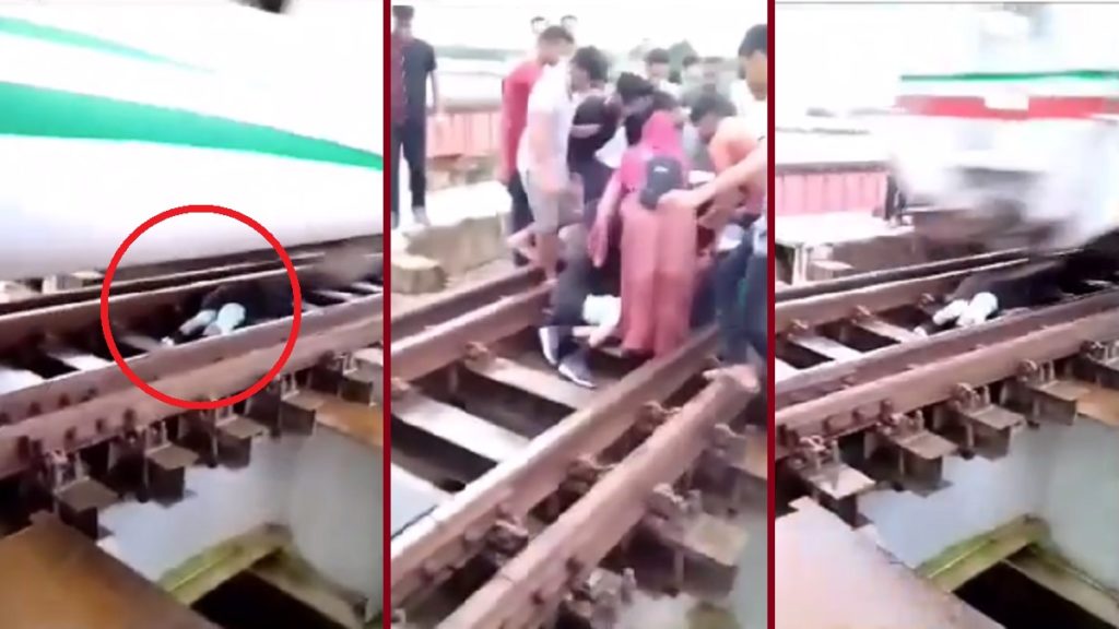 ব্রাহ্মণবাড়িয়ার আখাউড়ায় ট্রেনের নিচে পড়েও কাটা পড়া থেকে বেঁচে গেছেন লিজা (২০) নামের এক গৃহবধূ। এ ঘটনার ২৮ সেকেন্ডের একটি ভিডিও সামাজিক যোগাযোগমাধ্যমে ছড়িয়ে পড়েছে।