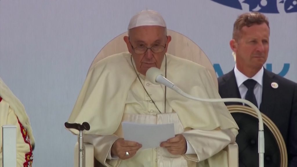 পোপ ফ্রান্সিস বলেন, এখানে আসার কারণ অন্তরের অন্তঃস্থল থেকে দুঃখপ্রকাশ। আরও একবার ক্ষমা চাওয়া। খ্রিষ্ট ধর্মীয় অনেকে সাম্রাজ্যবাদী মানসিকতা থেকে আদিবাসীদের ওপর আধিপত্য দেখিয়েছে। তীব্র লজ্জা নিয়ে দ্ব্যর্থহীনভাবে সেসব অপরাধের জন্য নির্যাতিতদের কাছে ক্ষমা চাই।