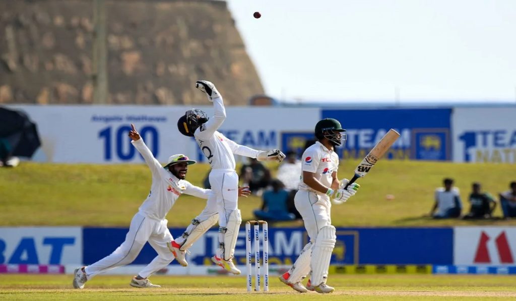এর আগে, দ্বিতীয় দিনে ব্যাটিং বিপর্যয়ে পড়ে বাবর আজমের দল। লঙ্কান স্পিন বিষে নীল হয় দলটি। আর এর শুরু প্রথম টেস্ট জয়ের নায়ক আব্দুল্লাহ শফিকের বিদায়ে। রানের খাতা খোলার আগেই আসিথা ফার্নান্দোর শিকার হয়ে ফেরেন তিনি। প্রবাথ জয়াসুরিয়ার বলে বোল্ড হয়ে মাত্র ১৬ রান করে সাজঘরে ফেরেন অধিনায়ক বাবর আজম। ইনিংস বড় করতে পারেননি ইমাম-রিজওয়ান-ফাওয়াদরা।
