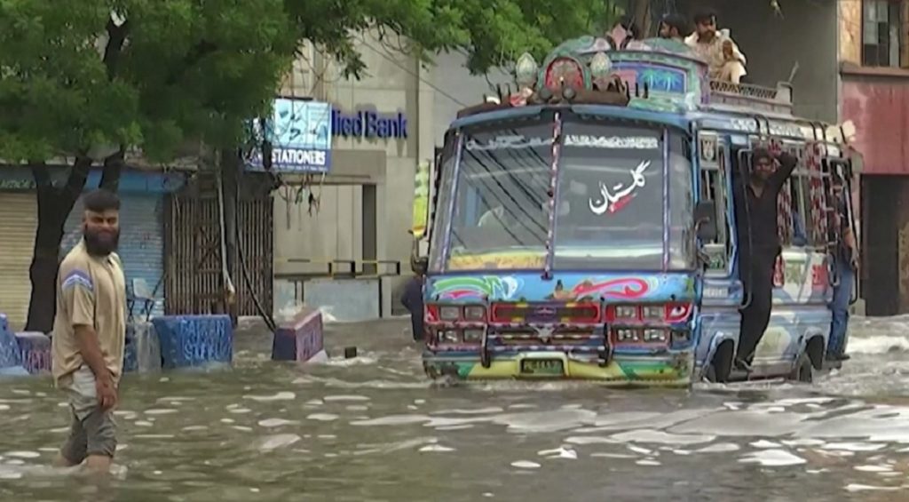সোমবার টানা ২৪ ঘণ্টার বৃষ্টিপাতে শুধুমাত্র করাচি শহরেই প্রাণ হারিয়েছেন কমপক্ষে ১১ জন। সড়কে জলাবদ্ধতার জেরে ব্যাহত হচ্ছে যান চলাচল। তীব্র যানজটের কারণে স্থবির হয়ে পড়েছে দেশটির এ বাণিজ্যিক রাজধানী।