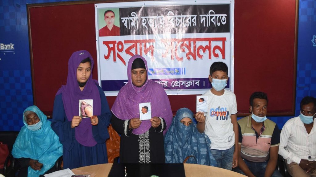 মঙ্গলবার (২৬ জুলাই) বিকেলে যশোর প্রেসক্লাব মিলনায়তনে আয়োজিত সংবাদ সম্মেলনে এসব অভিযোগ করেন মামলার বাদী ও নিহতের স্ত্রী নাসরিন আক্তার। তিনি গত ১৬ মে যশোরের সিনিয়র জুডিসিয়াল ম্যাজিস্ট্রে আদালতে ৫ জনের নামে মামলা দায়ের করেন। মামলাটি তদন্তের দায়িত্ব পেয়েছে পুলিশ ব্যুরো অব ইনভেস্টিগেশন (পিবিআই)। আদালতে মামলা করায় আসামিরা বাদী ও তার সন্তানদের প্রাণনাশের হুমকি দিচ্ছে বলেও অভিযোগ করা হয় সংবাদ সম্মেলনে।