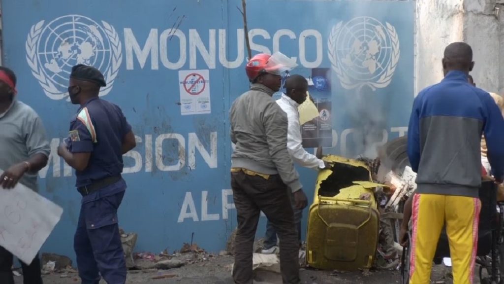 দেশটির নর্থ কিভু প্রদেশের কয়েকটি শহরে সোমবার শুরু হয় জাতিসংঘ শান্তিরক্ষী মিশন হটানোর প্রতিবাদ। বিক্ষোভকারীদের অভিযোগ, সন্ত্রাসী সংগঠনগুলোর হাত থেকে বেসামরিকদের রক্ষায় ব্যর্থ শান্তিরক্ষী মিশন। এরই প্রতিবাদে জাতিসংঘ ভবনে ভাঙচুর ও অগ্নিসংযোগ করে ক্ষুব্ধ জনতা। তাছাড়া, সেনা ঘাঁটিতে চালায় হামলা। সেনাসদস্যদের বাড়িতেও ঢুকে পড়ে তারা; চালায় লুটপাট।