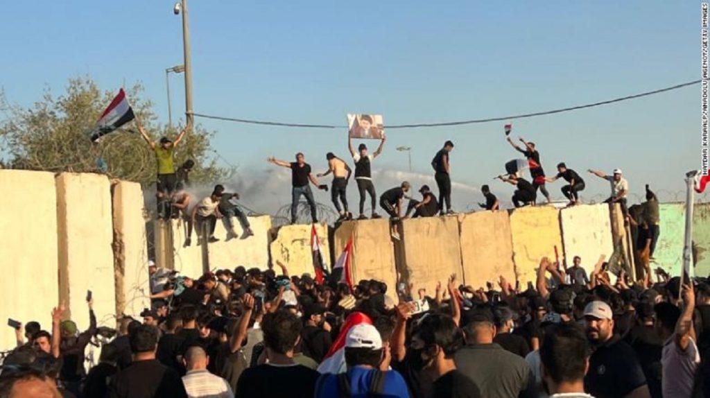 এদিকে, দেশটির বর্তমান প্রধানমন্ত্রী মোস্তফা আল-কাদিমি সুরক্ষিত গ্রিন জোন থেকে বিক্ষোভকারীদের অবিলম্বে সরে যাওয়ার আহ্বান জানিয়েছেন। এক বিবৃতিতে তিনি সতর্ক করেছেন যে, রাষ্ট্রীয় প্রতিষ্ঠান এবং বিদেশি মিশনগুলি ক্ষতি রোধে কাজ করবে নিরাপত্তা বাহিনী।