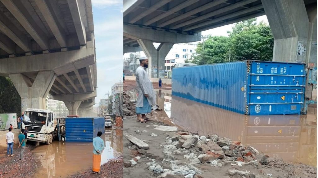 চট্টগ্রামের ইপিজেডে সড়কের গর্তে জমে থাকা পানিতে একটি পণ্যবোঝাই কন্টেইনার উল্টে পড়ে সৃষ্টি জনভোগান্তি। তবে এ সময় পাশে অন্য কোনো যানবাহন ও পথচারী না থাকায় কোনো হতাহতের ঘটনা ঘটেনি।