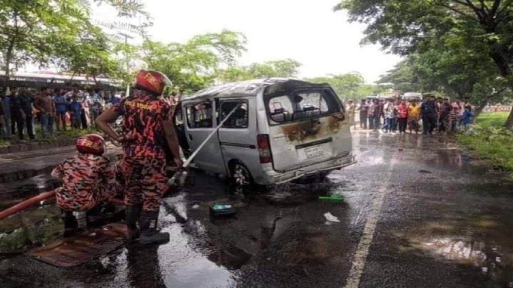 জানা গেছে, শনিবার (৬ আগস্ট) সকাল ১১টায় ঢাকা থেকে নোয়াখালীগামী একটি মাইক্রোবাসের চাকা বিস্ফোরিত হয়ে ইঞ্জিনে আগুন লেগে যায়। এ সময় ওই মাইক্রোবাসে থাকা চালকসহ অন্তত ৮ যাত্রী আহত হয়।