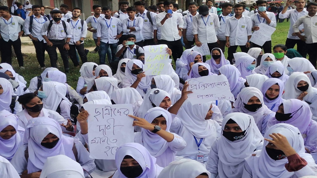 আন্দোলনরত শিক্ষার্থীদের একজন বলেন, আমাদের এক সহপাঠীকে প্রিন্সিপাল স্যার ফেসবুকে অশ্লীল কথা বলেছে। এই ঘটনার পর থেকে প্রিন্সিপাল স্যারের স্ত্রীসহ অনেকেই ভুক্তভোগীকে নানাভাবে হুমকি দিচ্ছে। তাকে কলেজ থেকে টিসি দেয়ারও হুমকি দেয়া হয়েছে। আমাদের দাবি উনাকে (অভিযুক্ত প্রিন্সিপাল) পদত্যাগ করতে হবে এবং দাবি না আদায় হওয়া পর্যন্ত আমরা ক্লাস বর্জন করেছি।