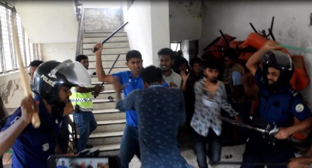 ঊর্ধ্বতন নেতৃবৃন্দ। এ সময় জেলা ছাত্রলীগের সভাপতি রেজাউল কবীর রেজা, সাধারণ সম্পাদক তৌশিকুর রহমান ইমরান, জ্যেষ্ঠ সহসভাপতি সবুজ মোল্লা এবং কেন্দ্রীয় ছাত্রলীগের সদস্য রিশাত হাসান প্রিন্স ও তাদের কর্মী-সমর্থকরা জেলা শিল্পকলা একাডেমিতে এলে দুই পক্ষের মধ্যে ধাওয়া-পাল্টা ধাওয়া শুরু হয়। শিল্পকলা একাডেমি থেকে সংঘর্ষ মুহূর্তেই গোটা শহরে ছড়িয়ে পড়ে।