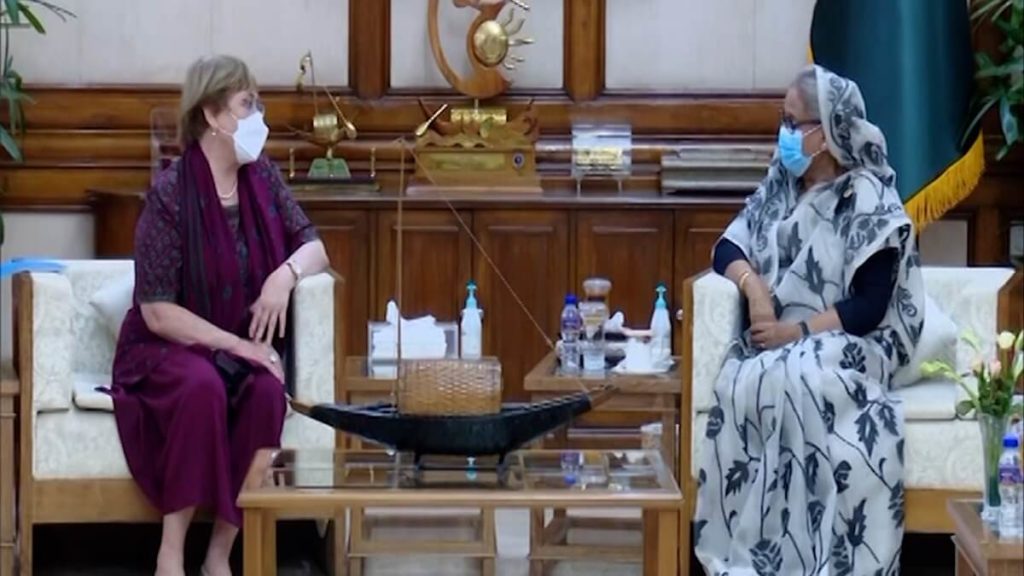 প্রধানমন্ত্রী শেখ হাসিনার সাথে সৌজন্য সাক্ষাৎ করেছেন জাতিসংঘের মানবাধিকার বিষয়ক হাইকমিশনের প্রধান মিশেল ব্যাচেলেট।