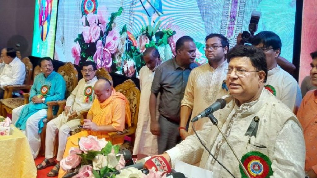 বৃহস্পতিবার (১৮ আগস্ট) সন্ধ্যায় চট্টগ্রাম নগরের জেএম সেন হলে জন্মাষ্টমী উৎসবের উদ্বোধনী অনুষ্ঠানে পররাষ্ট্রমন্ত্রী এসব কথা বলেন। এসময় তিনি বলেন, আমি বলেছি, আমার দেশে কিছু দুষ্ট লোক আছে, কিছু উগ্রবাদী আছে। আমার দেশ পৃথিবী থেকে বিচ্ছিন্ন না, আপনার দেশেও যেমন দুষ্ট লোক আছে, আমাদের দেশেও আছে। কিছুদিন আগে আপনাদের দেশেও এক ভদ্রমহিলা কিছু কথা বলেছিলেন, আমরা সরকারের পক্ষ থেকে একটি কথাও বলিনি। বিভিন্ন দেশ কথা বলেছে, আমরা বলিনি। এ ধরনের প্রটেকশন আমরা আপনাদের দিয়ে যাচ্ছি। সেটা আপনাদের মঙ্গলের জন্য, আমাদের মঙ্গলের জন্য। আমরা যদি একটু বলি, তখন উগ্রবাদীরা আরও সোচ্চার হয়ে আরও বেশি বেশি কথা বলবে। তাতে আমাদের দেশের আইনশৃঙ্খলা বিঘ্ন হবে। আমাদের স্থিতিশীলতা বিঘ্ন হবে।