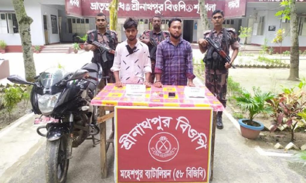 মঙ্গলবার (২৩ আগস্ট) বেলা আনুমানিক ১২টার দিকে সীমান্তের শ্রীনাথপুর বিওপির শরিয়াঘাট বটতলা এলাকা থেকে ঝিনাইদহ সদর উপজেলার টিকারী নতুন পাড়া গ্রামের মৃত আবু বক্করের ছেলে মো. সাইদ খান ও মাগুরা জেলার শতিজাতপুর গ্রামের মৃত একরাম মোল্লার ছেলে মো. মেহেদী হাসানকে আটক করা হয়। তাদের কাছ থেকে বাইশ হাজার পাঁচশত জাল টাকা উদ্ধার করা হয়।