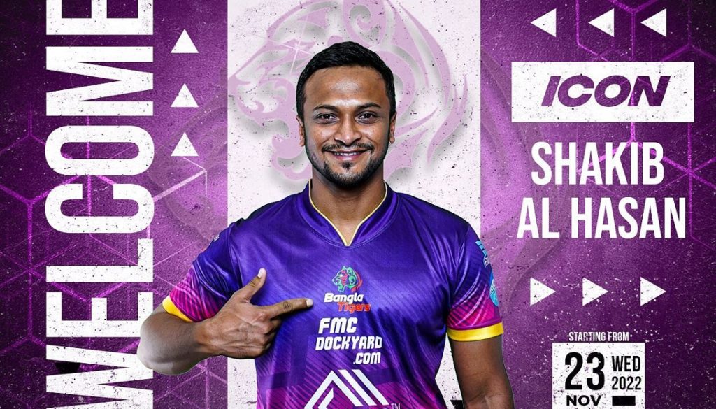 এই প্রথম টি-টেন লিগে খেলতে যাচ্ছেন সাকিব। সামাজিক যোগাযোগমাধ্যমে সাকিব বলেছেন, বাংলা টাইগার্সের প্রতিনিধিত্ব করতে পেরে তিনি আনন্দিত। সারা বিশ্বে বাংলাদেশের প্রতিনিধিত্বকারী ফ্র্যাঞ্চাইজির হয়ে খেলতে পারাটা সবসময়ই একটা সুন্দর অনুভূতি। একটি নতুন অভিজ্ঞতার জন্য উন্মুখ আমি।