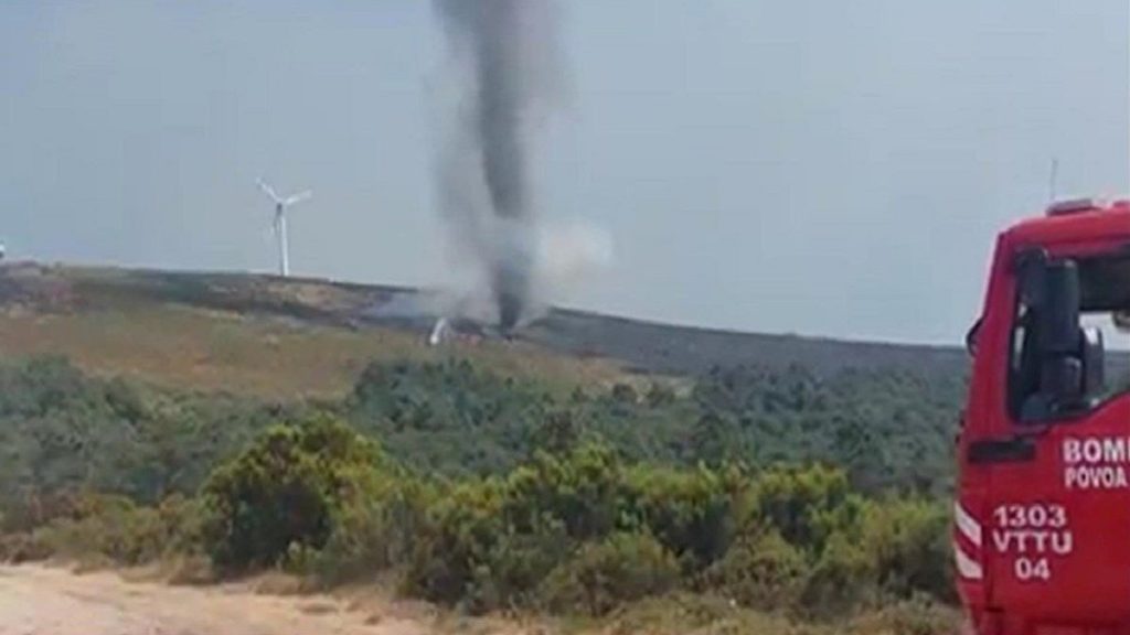 পর্তুগালে দেখা গেলো বিরল আগুনের টর্নেডো। আলভাও ন্যাচারাল পার্কে দাবানলের পাশে বিশাল কুণ্ডলী পাকিয়ে তৈরি হতে যেতে দেখা যায় এ টর্নেডো।