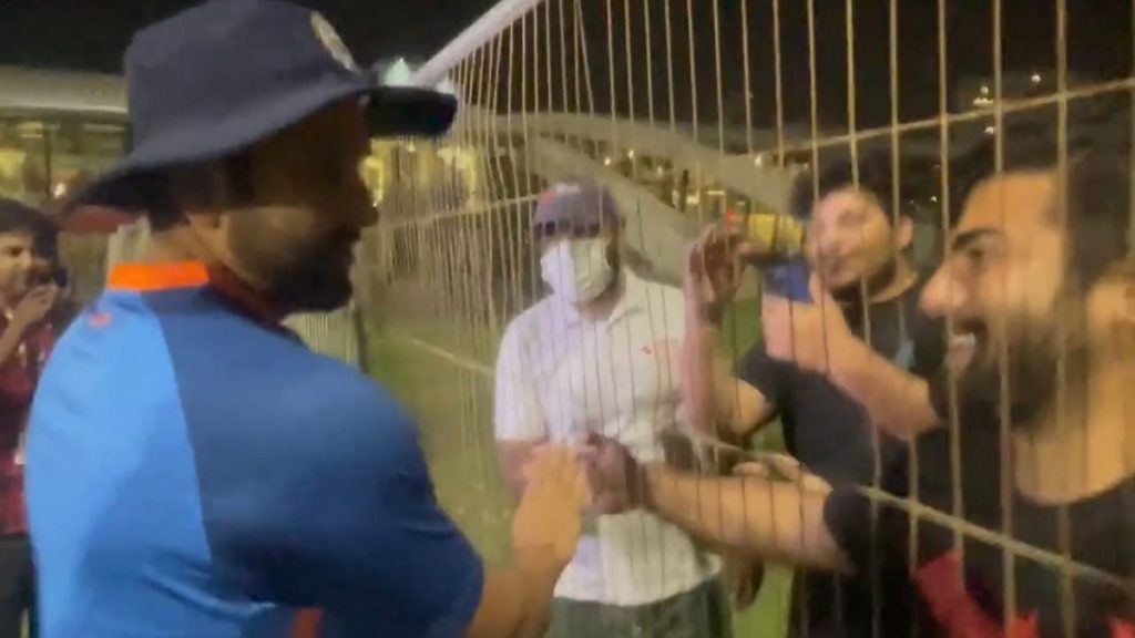 পাকিস্তানের সমথর্কের প্রতি অনন্য ভালোবাসার নজির দেখালেন ভারত অধিনায়ক রোহিত শর্মা। সমথর্কের আহ্বানে সাড়া দিয়ে মাঠ পেরিয়ে যান তিনি তারকাটার বেড়ার কাছে। হাত মেলান, কথাও বলেন। রোহিত শর্মার এমন ব্যবহারে মুগ্ধ পাকিস্তানের সমথর্ক।