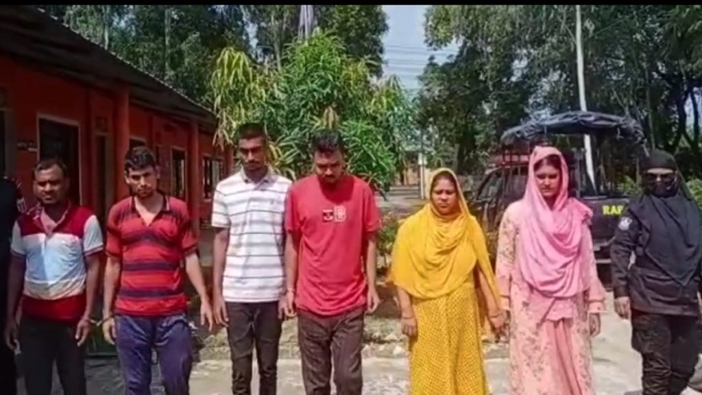 গাজীপুরের শ্রীপুরে সামাজিক যোগাযোগমাধ্যম ও অজ্ঞাত মোবাইল নম্বরে পরিচয়ের সূত্র ধরে ব্ল্যাকমেইলিং এবং পর্নোগ্রাফির মাধ্যমে অপহরণ ও চাঁদাবাজ চক্রের মূলহোতাসহ ৬ জনকে আটক করেছে র্যাব।