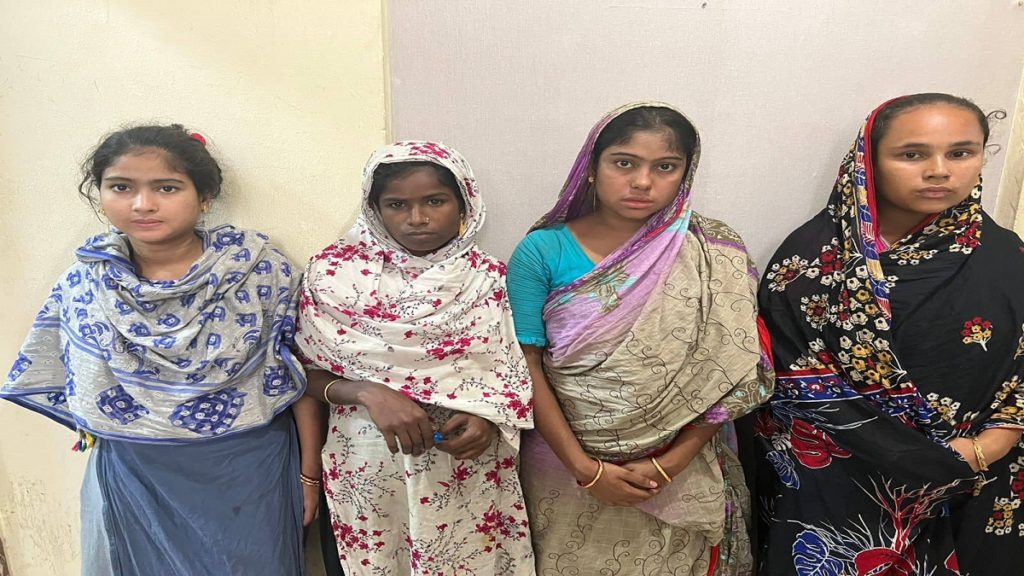 মঙ্গলবার (৬ সেপ্টেম্বর) সকালে উত্তরা পশ্চিম থানার ১২নং সেক্টরের একটি ফ্ল্যাট থেকে তাদের আটক করা হয় বলে নিশ্চিত করেছেন উত্তরা পশ্চিম থানার ওসি মো. মোহসীন। আটককৃতরা হলেন- আকলিমা খাতুন (২২), মুন্নি আক্তার (২০), তামান্না আক্তার (২২) এবং পিয়ারা খাতুন (২৫)। এদের মধ্যে মুন্নি ও তামান্না আপন বোন। বাকি দুইজন তাদের চাচাতো ও ফুফাতো বোন।