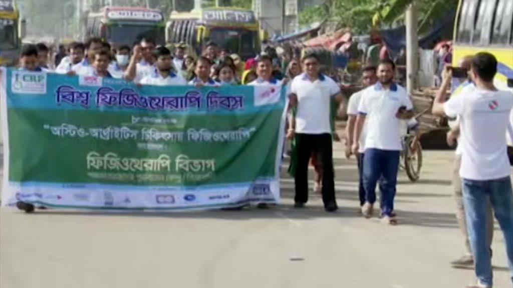 পক্ষাঘাতগ্রস্তদের পূণর্বাসন কেন্দ্র সিআরপির ফিজিওথেরাপি বিভাগ এই র্যালির আয়োজন করে। এতে সচেতনতামূলক বিভিন্ন ব্যানার ও প্লাকার্ড বহন করেন তারা। র্যালি শেষে প্রতিষ্ঠানটির সম্মেলন কক্ষে আলোচনা সভা অনুষ্ঠিত হয়। সভায় অংশ নেন সিআরপির উর্ধ্বতন কর্মকর্তারা। এ সময় বক্তরা অস্টিও-আর্থ্রাইটিস রোগের জন্য ফিজিওথেরাপি গ্রহণ ও সচেতনতা বৃদ্ধির ওপর জোর দেন।