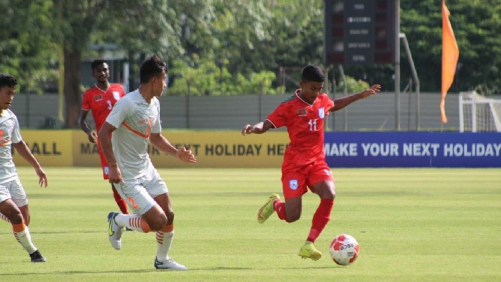 ম্যাচে শুরু থেকেই প্রভাব বিস্তার করে খেলতে থাকে বাংলাদেশ। বেশ কয়েকটি সুযোগ তৈরি করলেও গোল আদায়ে ব্যর্থ হয় তারা। ফলে গোলশূন্য রেখেই বিরতিতে যায় দু’দল।